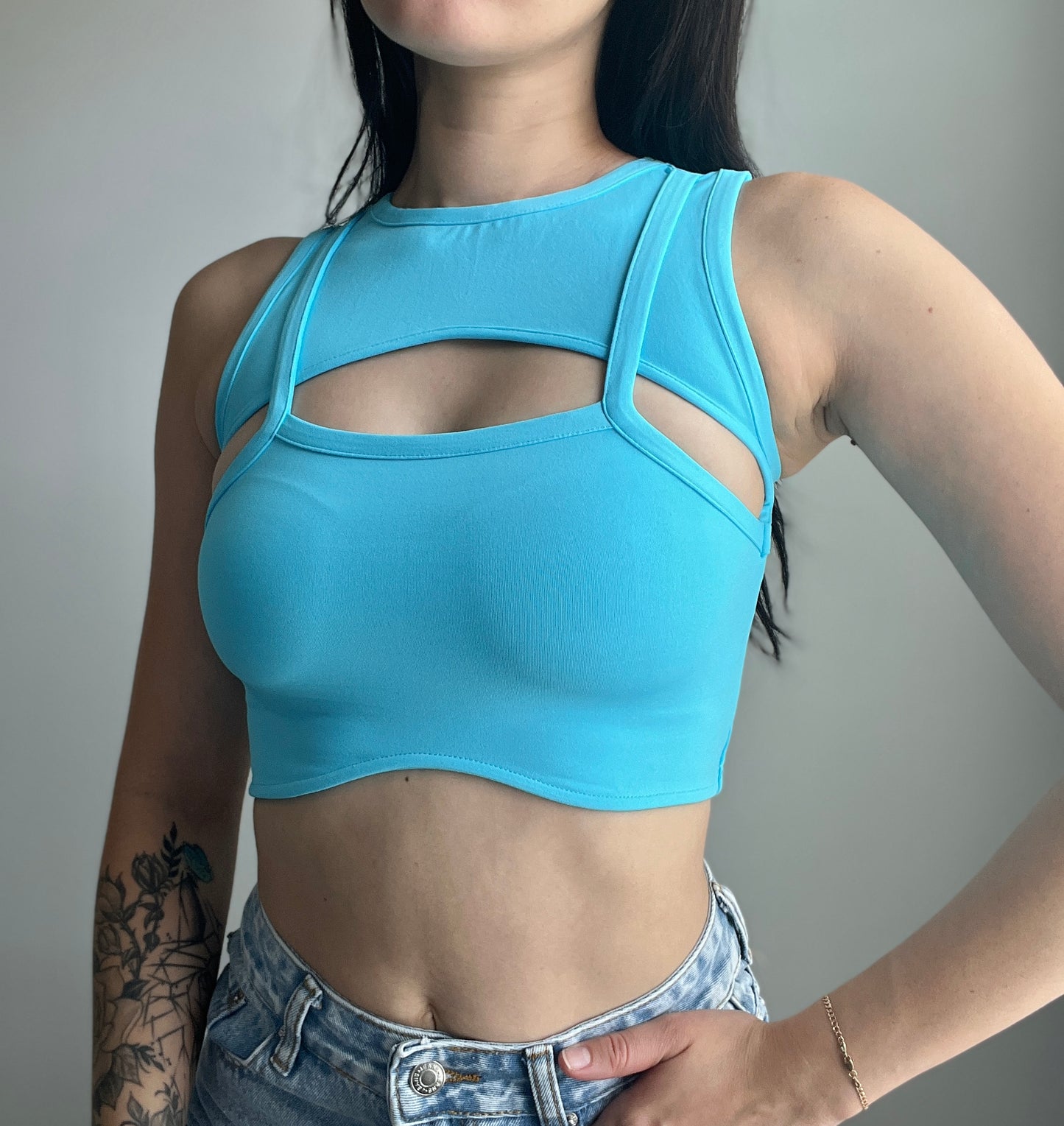 Bold & Stylish: One-Size Cut-Out Front Crop Top – Made in Colombia
